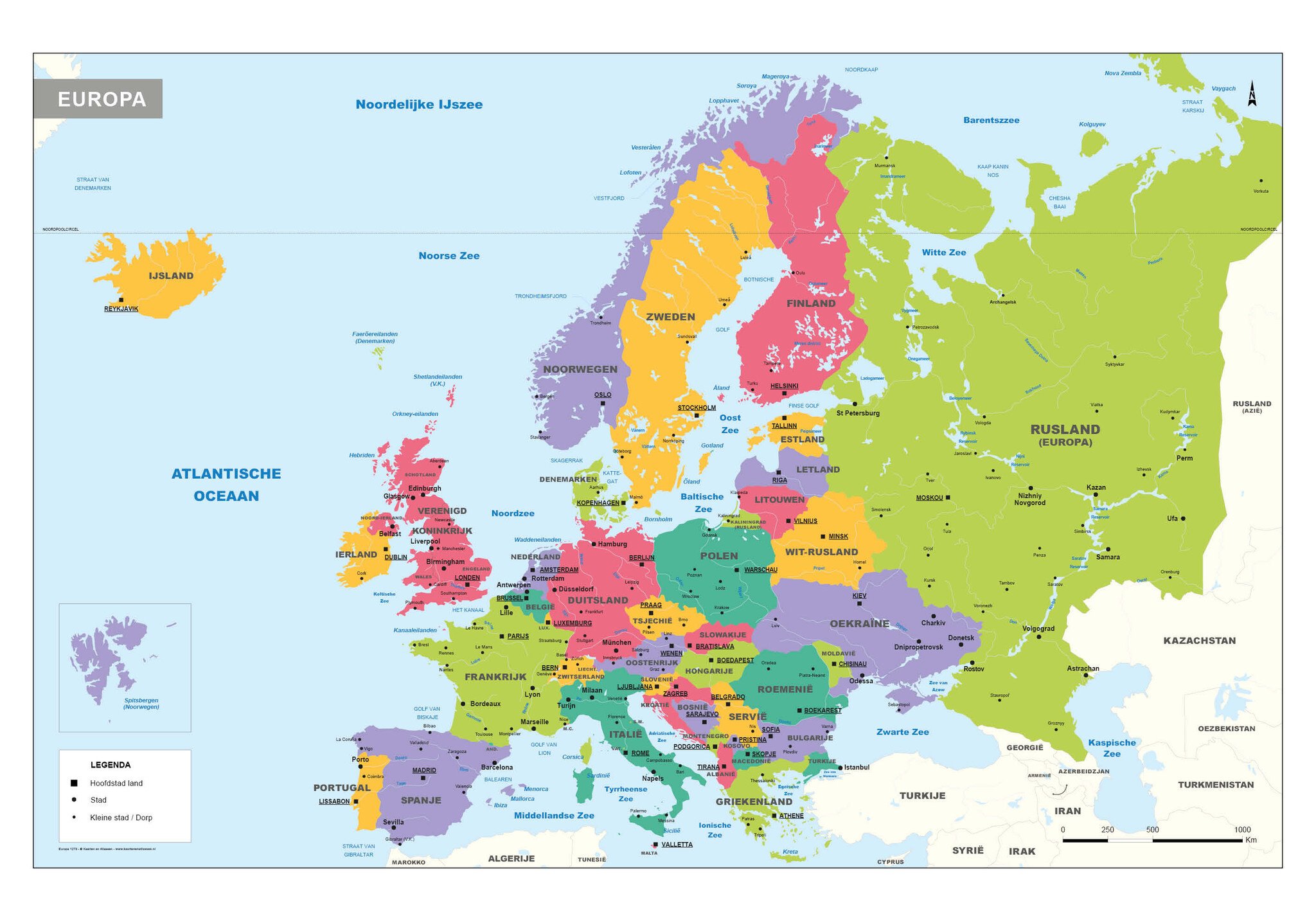 ✓ Gedetailleerde kaart van Europa met steden en wegen