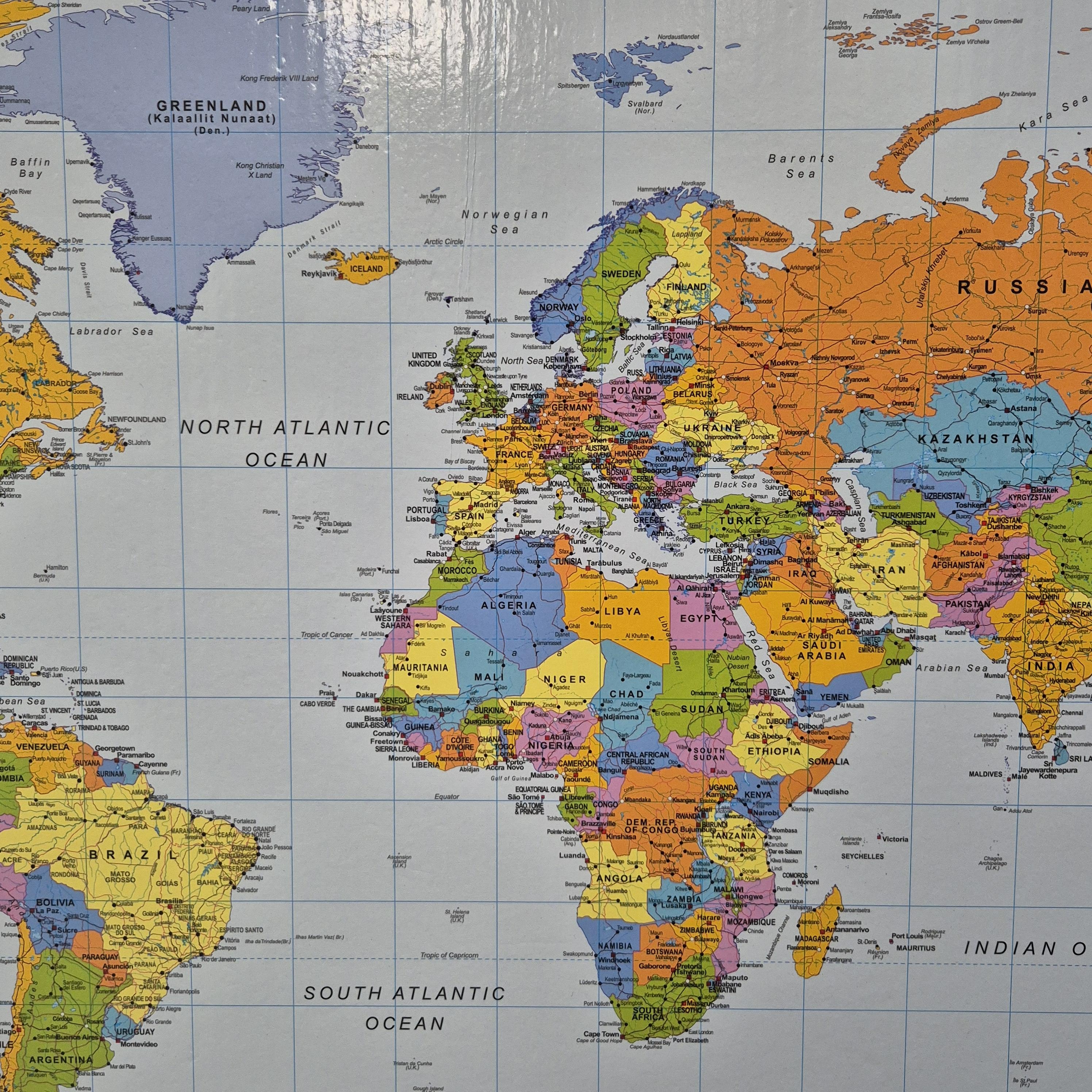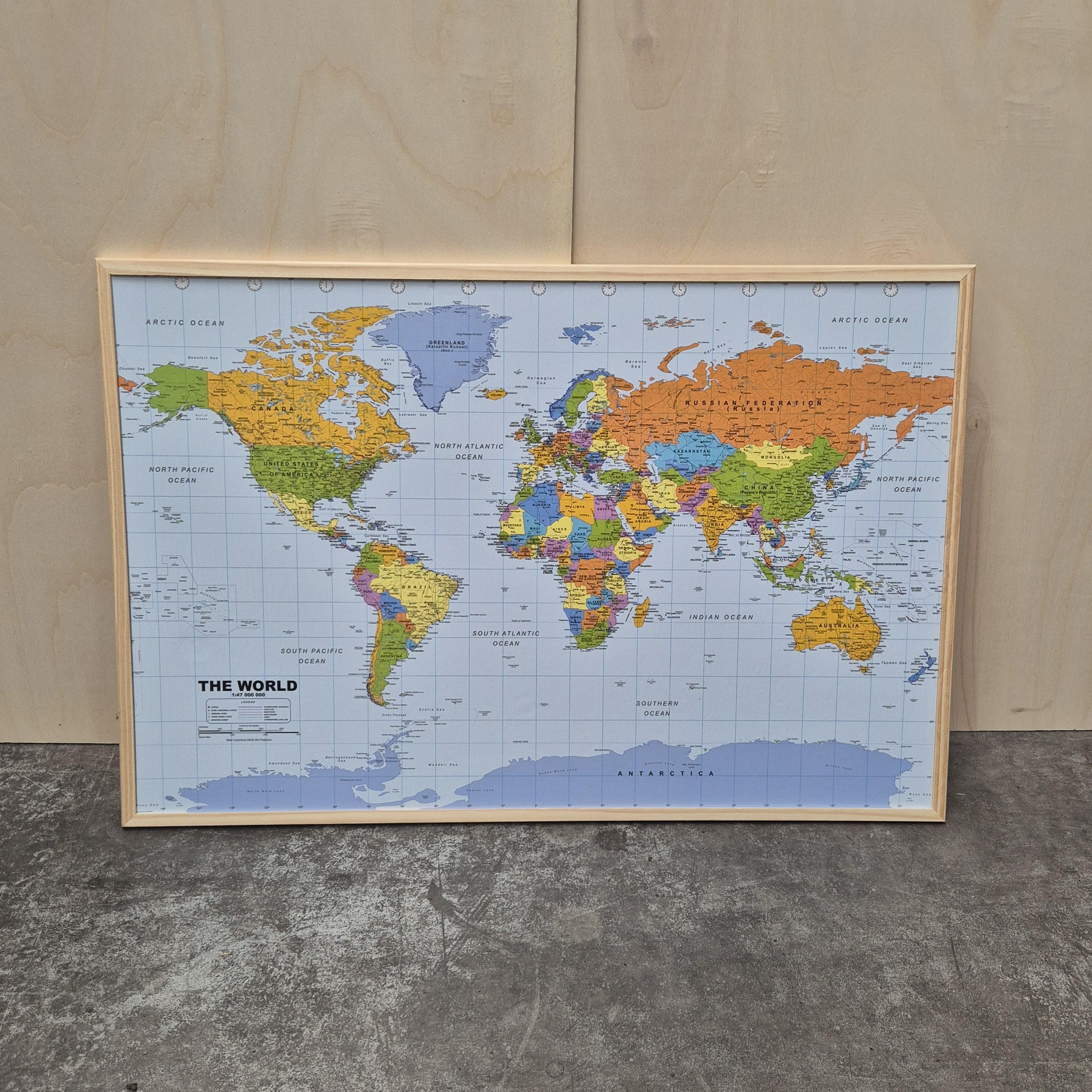 OUTLET - Prikbord Wereldkaart - Houten lijst - 60 x 90 cm