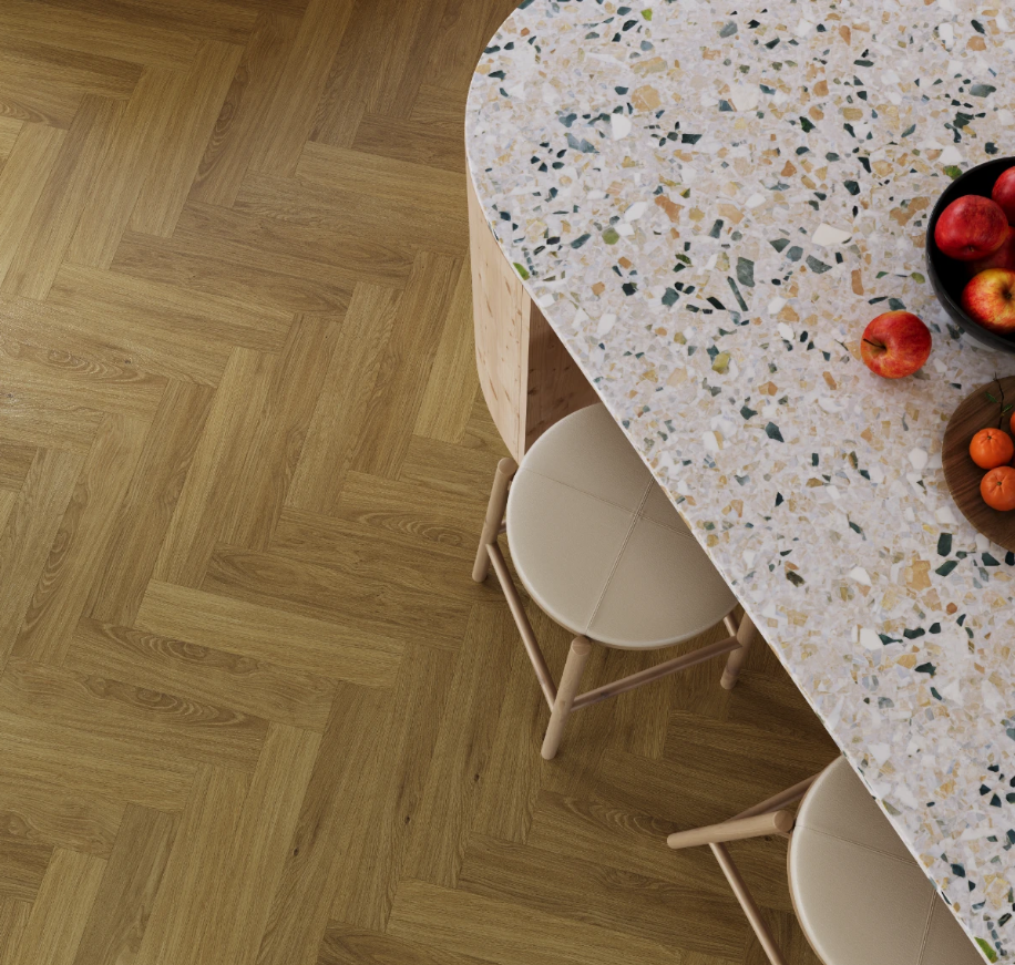 ✔ PVC-vrije visgraatvloer met geïntegreerd kurk